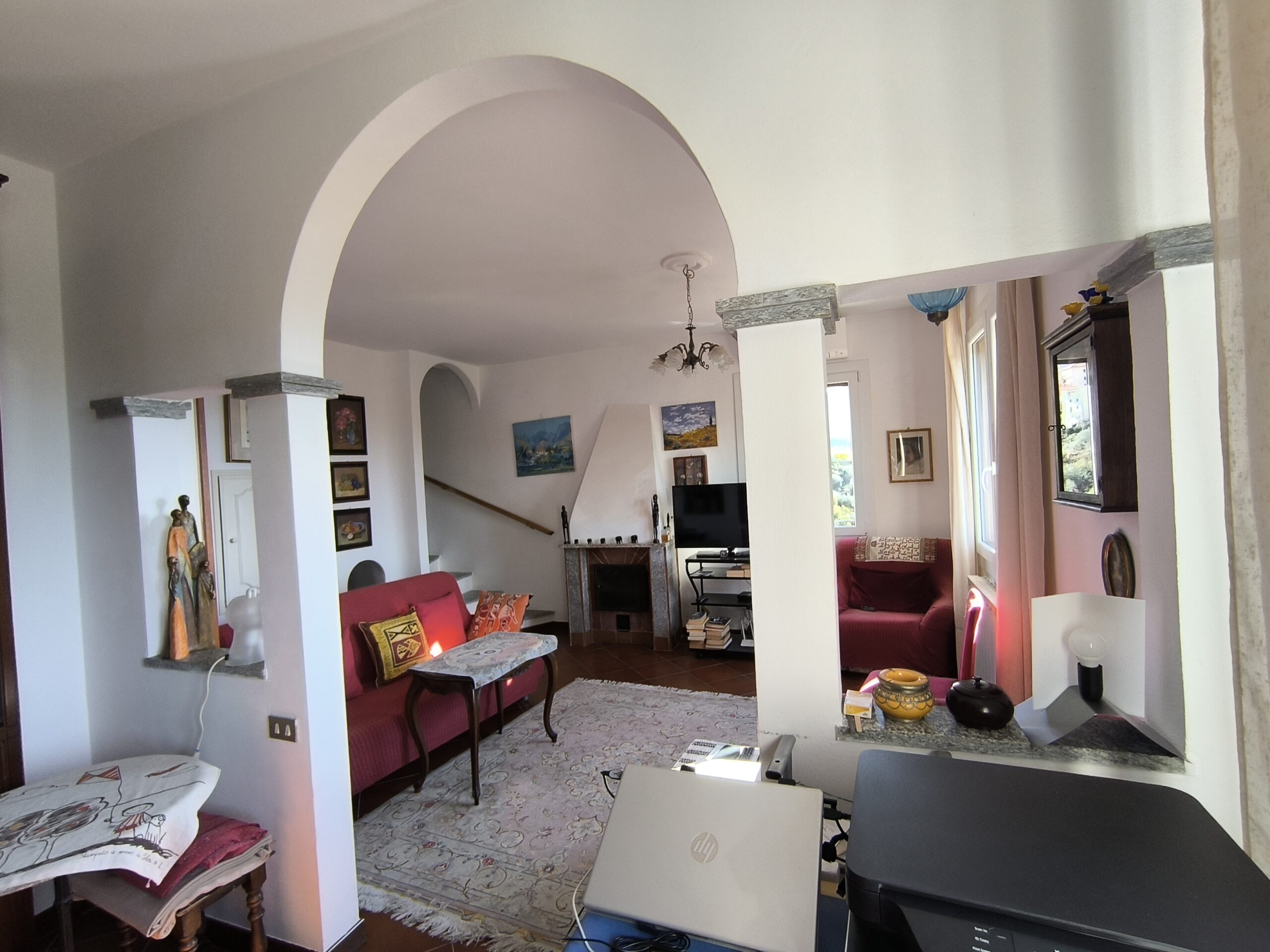Frittstående bolig med fri beliggenhet på alle fire sider, med noen nabohus i nærheten. Eiendommen har en stor terrasse, hage/tomt med havutsikt og garasje. Boligen er fordelt over tre plan: I første etasje finner du spisestue og kjøkken samt et bad. I andre etasje ligger en romslig dobbel stue. I tredje etasje er det to soverom og et bad. Eiendommen har nydelig utsikt mot både hav og fjell med privat beliggenehet, samtidig nær landsbyen. Oppvarming via vedovn koblet til radiatorene, i tillegg til gasskjele.